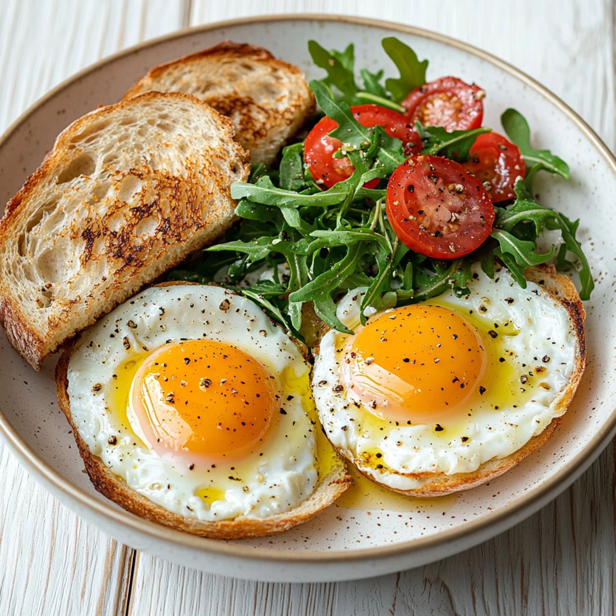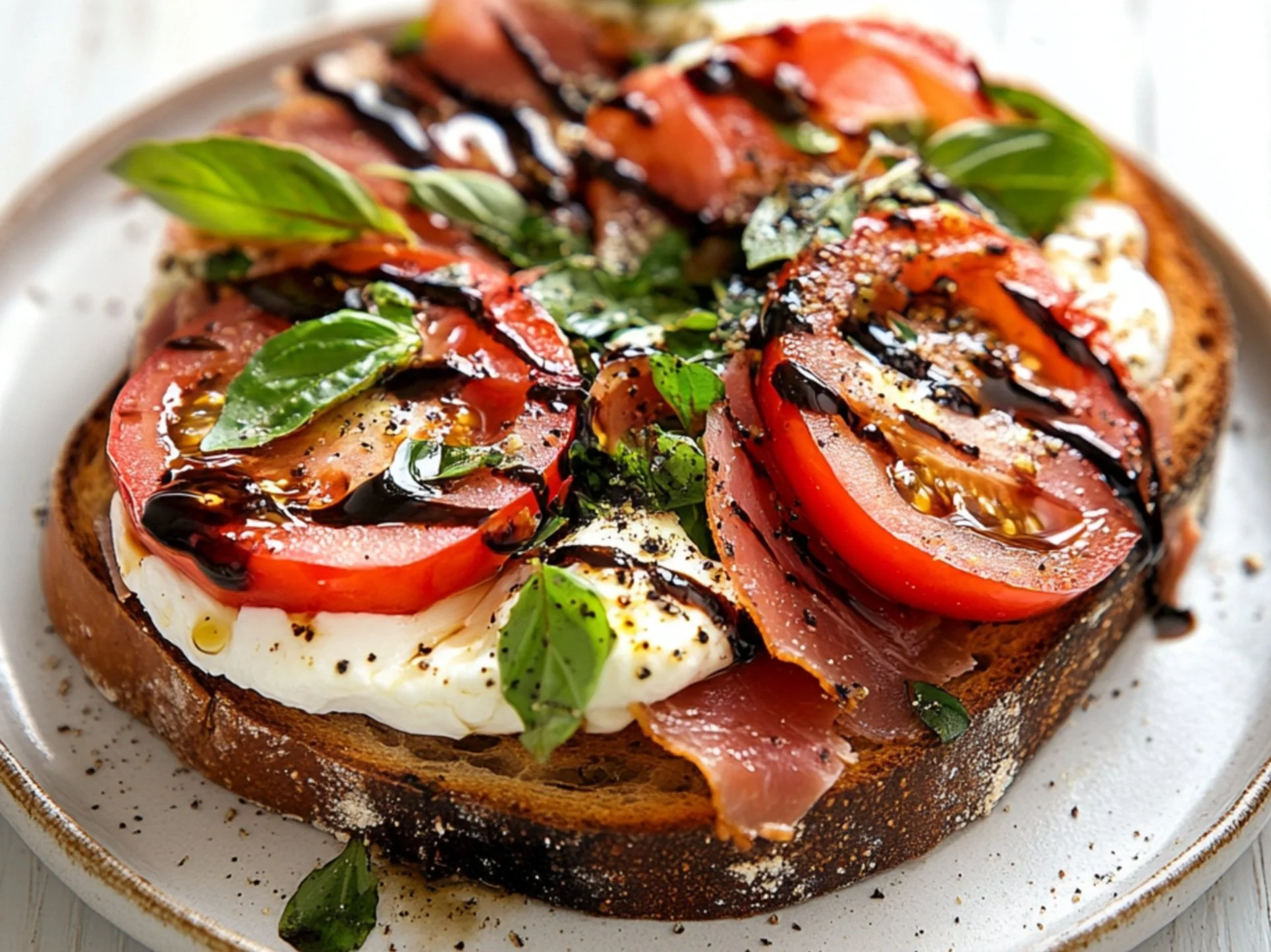 Toasted sourdough topped with fresh tomato, basil, and oregano, finished with a light balsamic glaze. Wholesome, vibrant, and full of Mediterranean goodness.