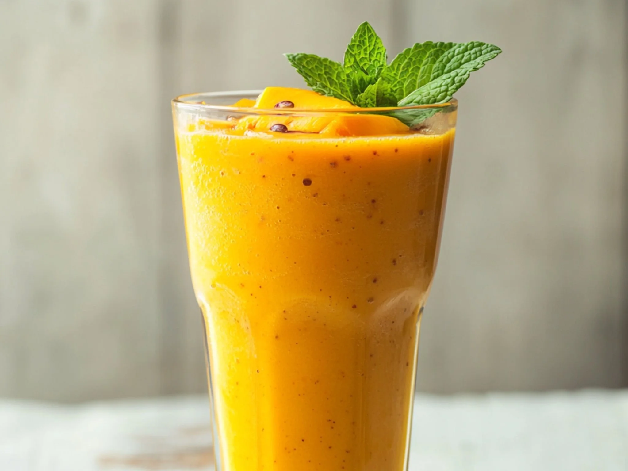 Light and tropical blend of mango, orange, mint, celery, Greek yogurt, and ginger, refreshing and naturally soothing.