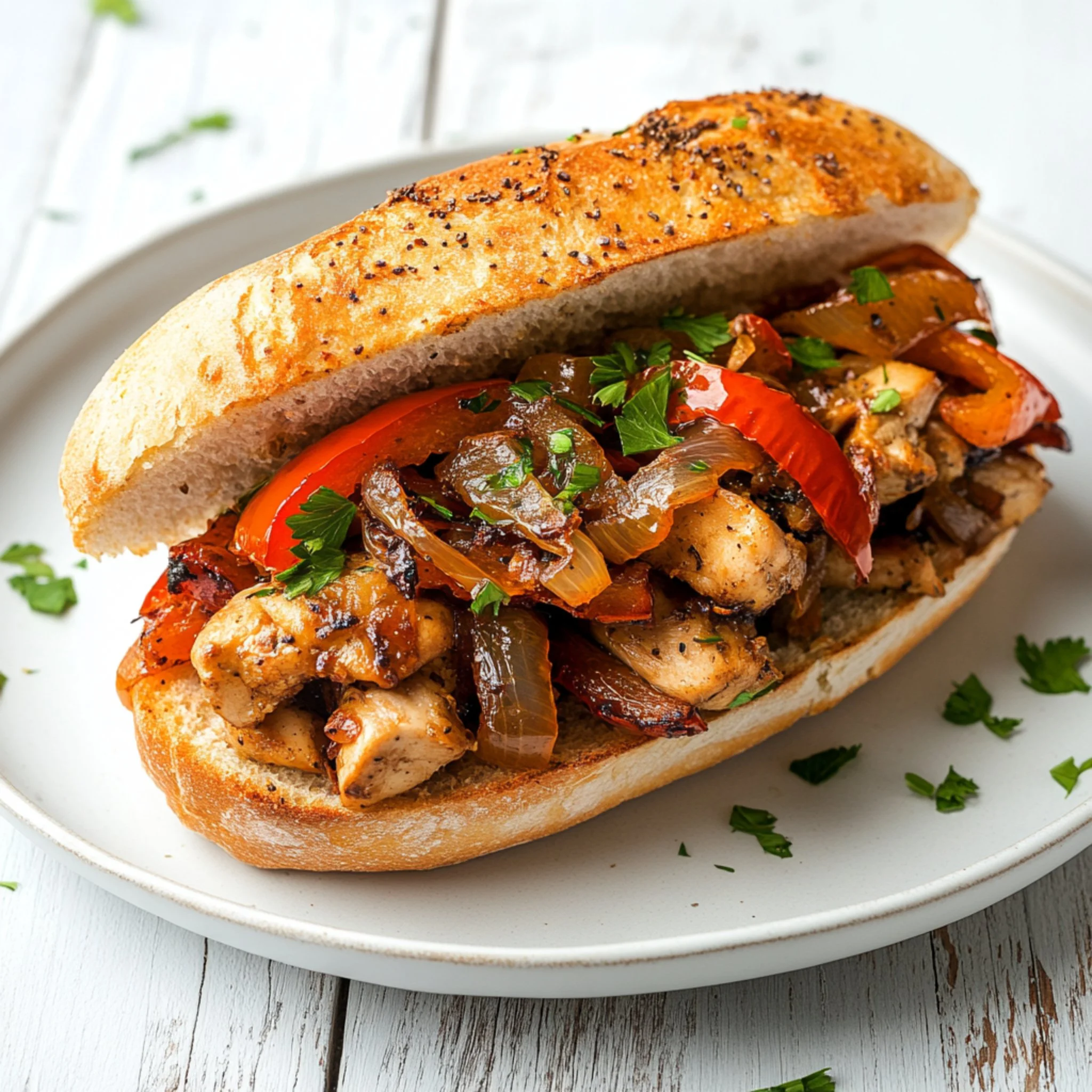 Antibiotic-free marinated chicken with caramelized onions and roasted peppers, finished with our signature golden roots sauce. Served warm on your choice of sourdough or gluten-free bread. Comforting, hearty, and made with clean ingredients.
