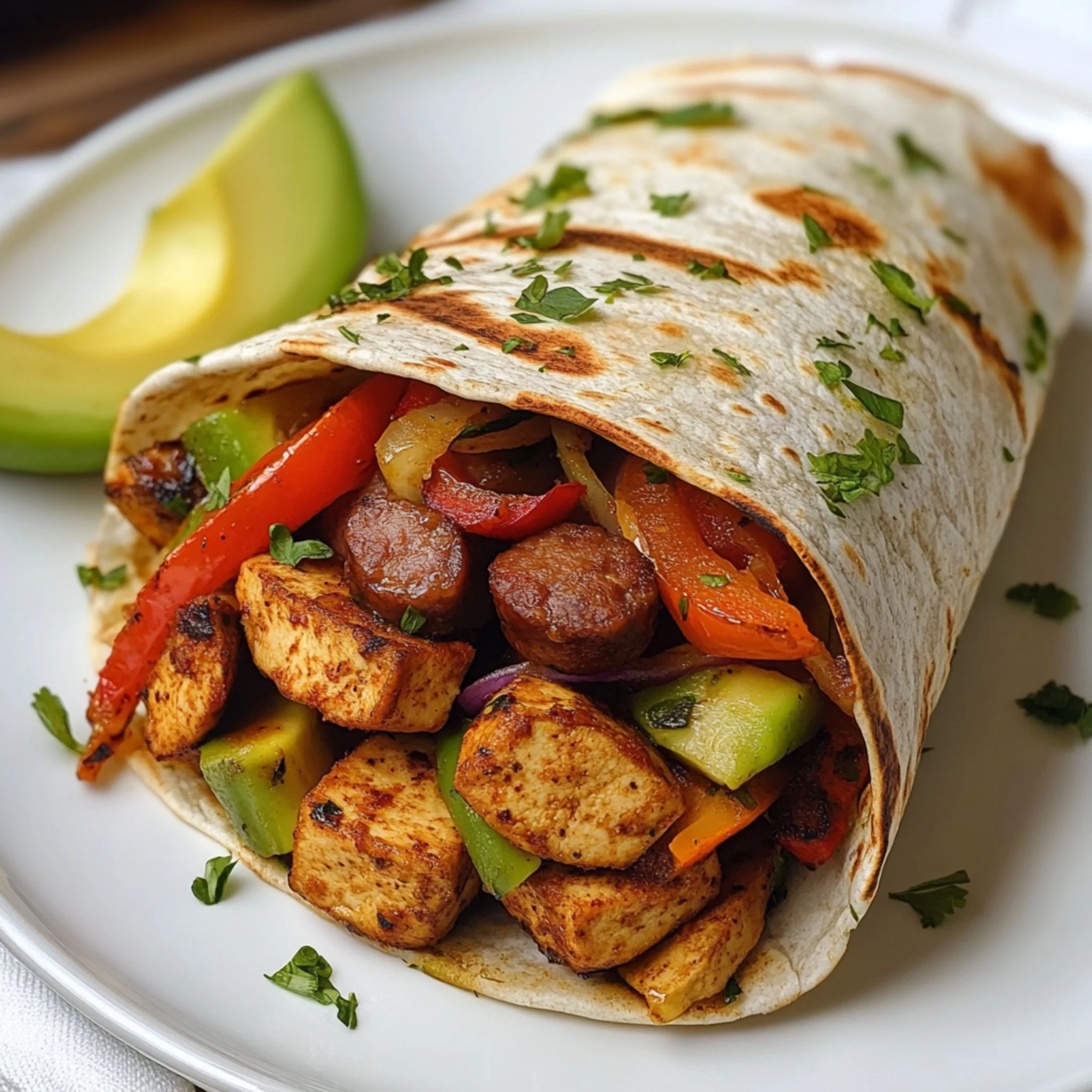 Sautéed seasoned tofu with roasted peppers, onions, mushrooms, vegan sausage, and avocado. Drizzled with our signature house sauce and wrapped in your choice of wholesome wrap. Plant-powered, satisfying, and 100% feel-good.