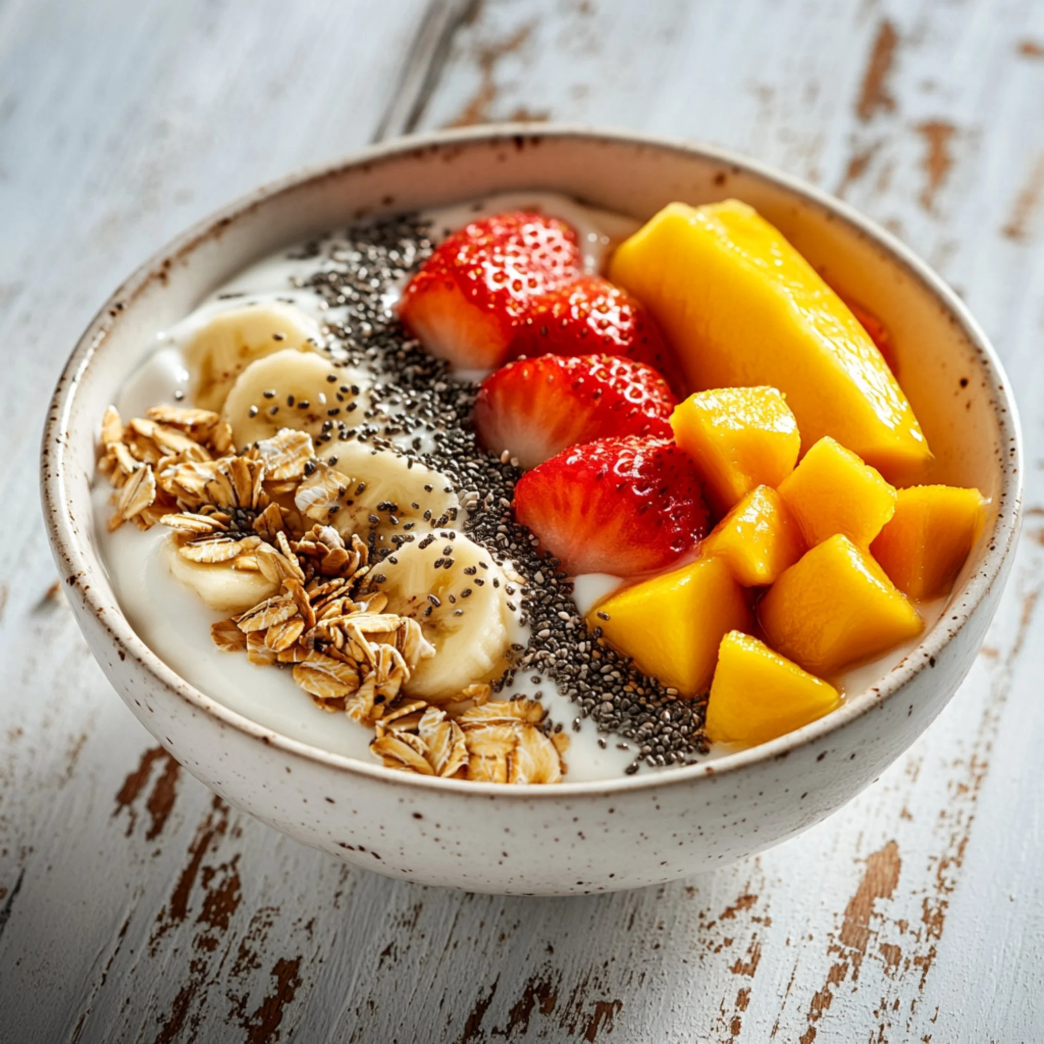 Creamy mix of berries, banana, Greek yogurt, and chia smooth, fruity, and antioxidant-rich.